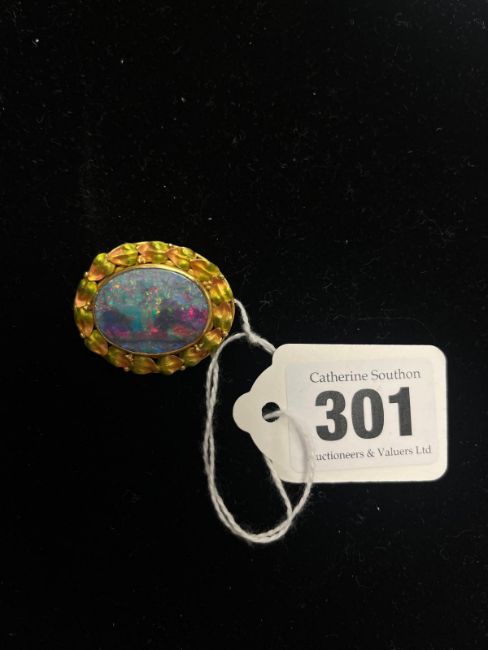 Condition: Opal in good condition with lovely play of colour. Enamel in good overall condition.