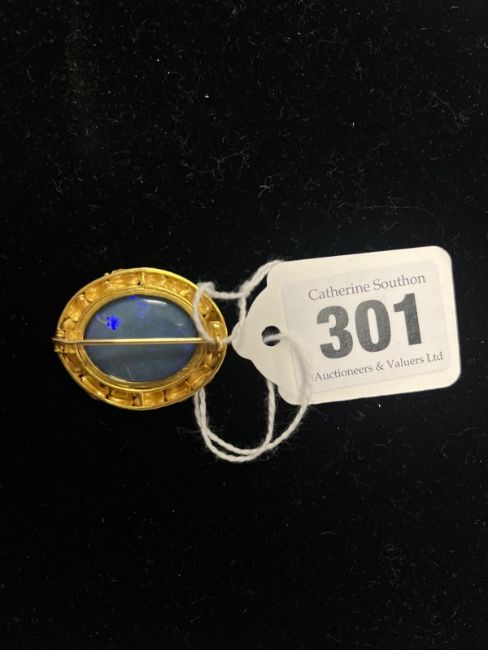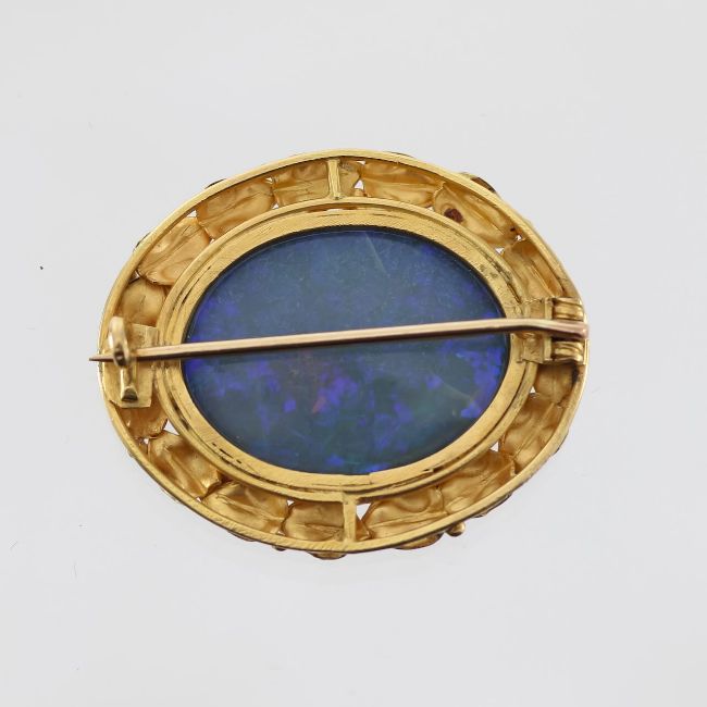 Dimensions: diameter of opal approx. 23mm., weight approx. 7.5g., diameter of brooch 32mm