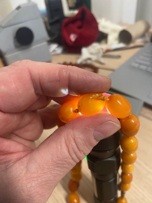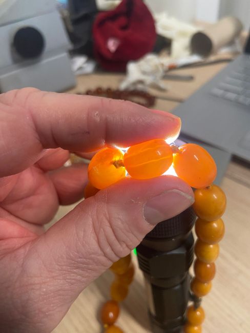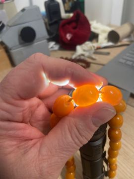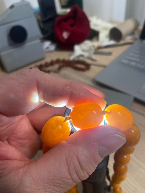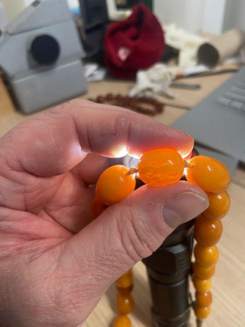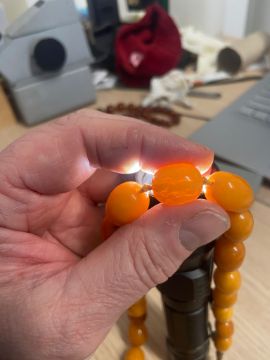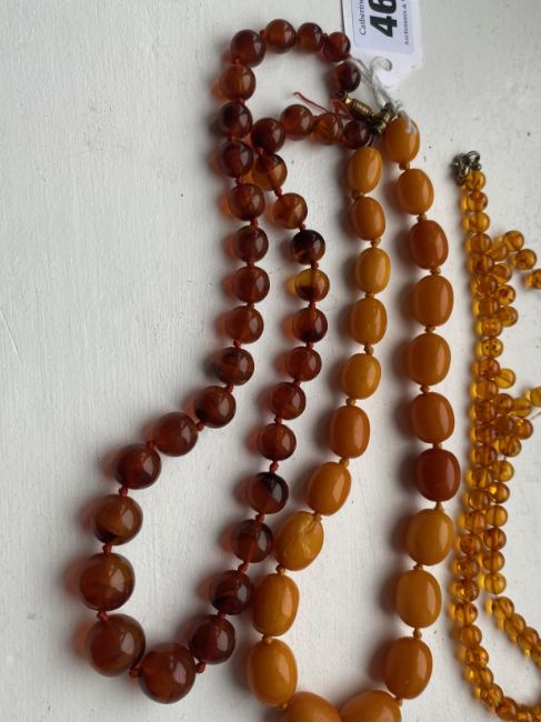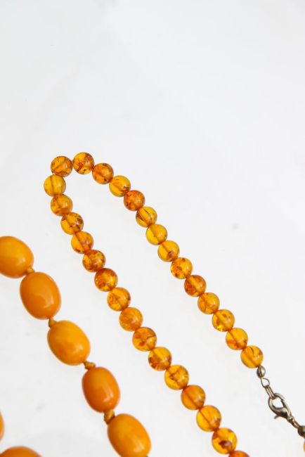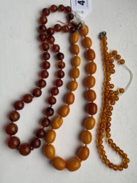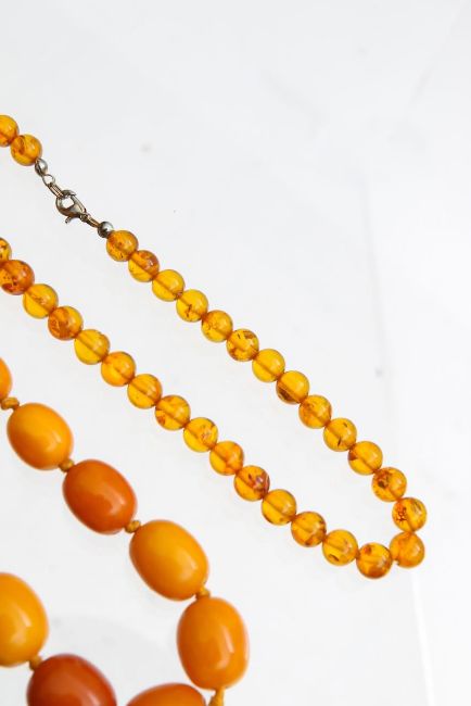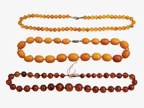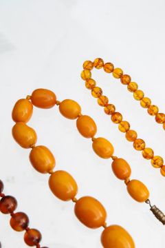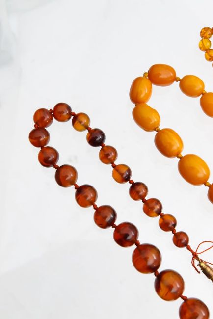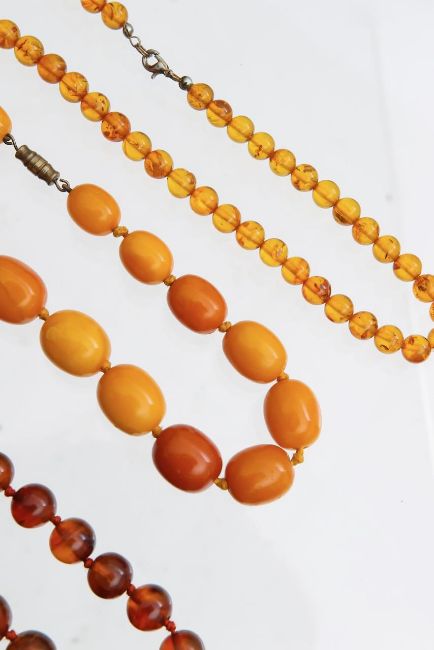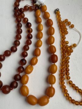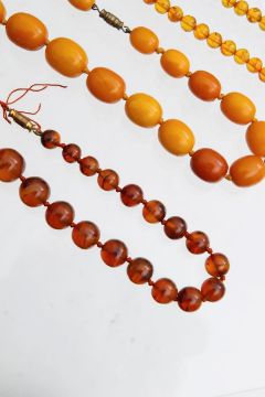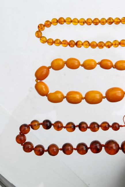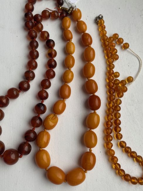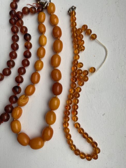 Three amber beaded necklaces