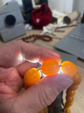 Condition: Damage bead on the butterscotch necklace, good swirls of colour some translucent inclusions, largest bead measurement 19x15mm graduating to 14x11mm, otherwise good condition, others in good condition