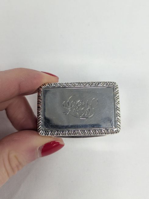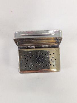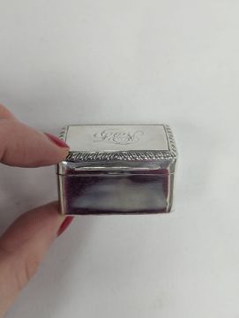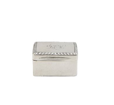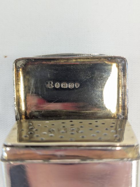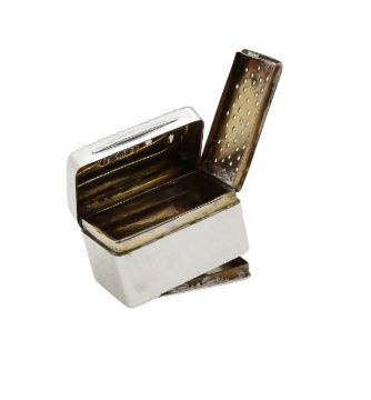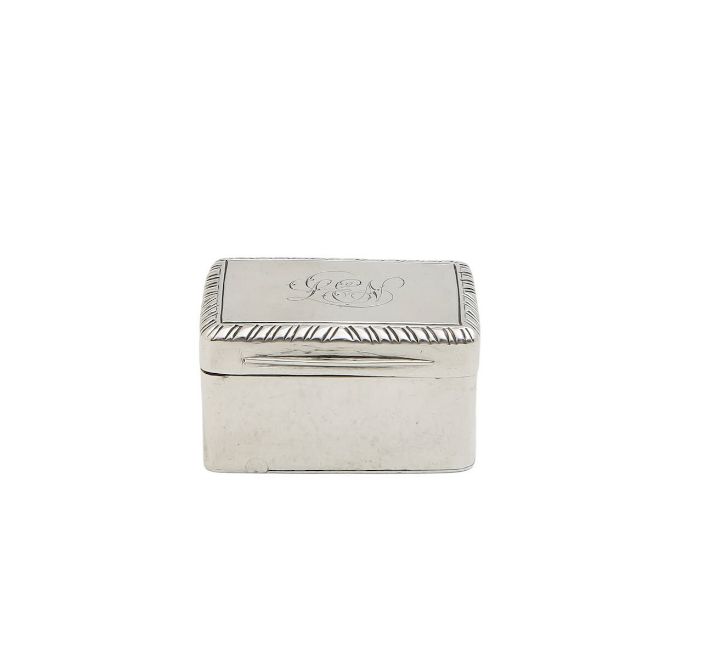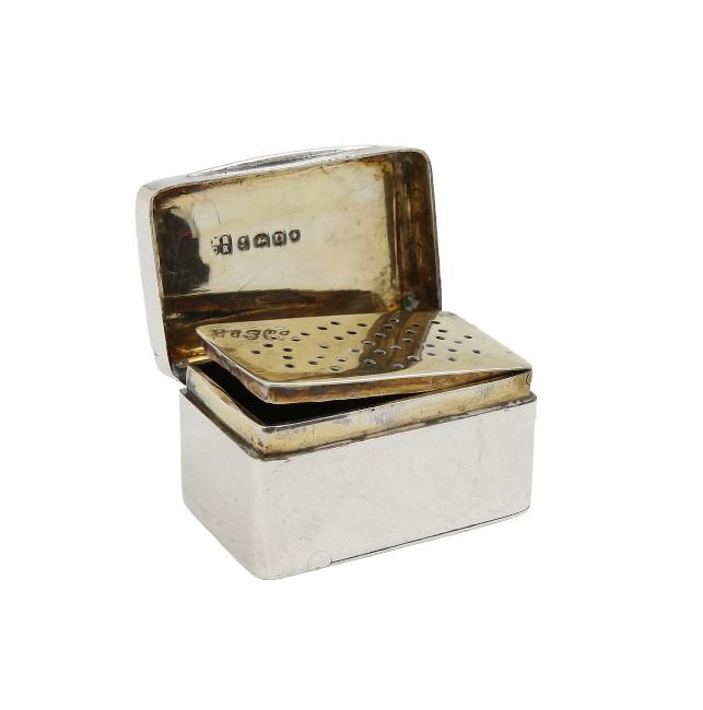 by Mary Ann & Charles Reilly, London 1828, the lid with engraved initials to a gadrooned border, opening to reveal a gilt interior with a pierced grille, and hinged base