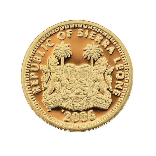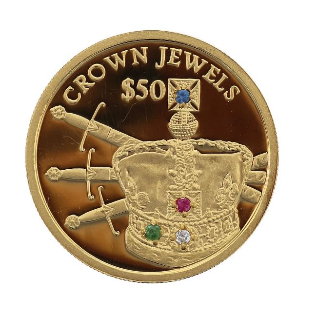 A Sierra Leone gold $50 Crown Jewels coin,