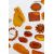 Of various colours; butterscotch, honey, cognac, cherry, etc., and shapes (polished and carved) including floral, horseshoe, the Buddha, mounted in white and yellow metals. (qty)