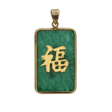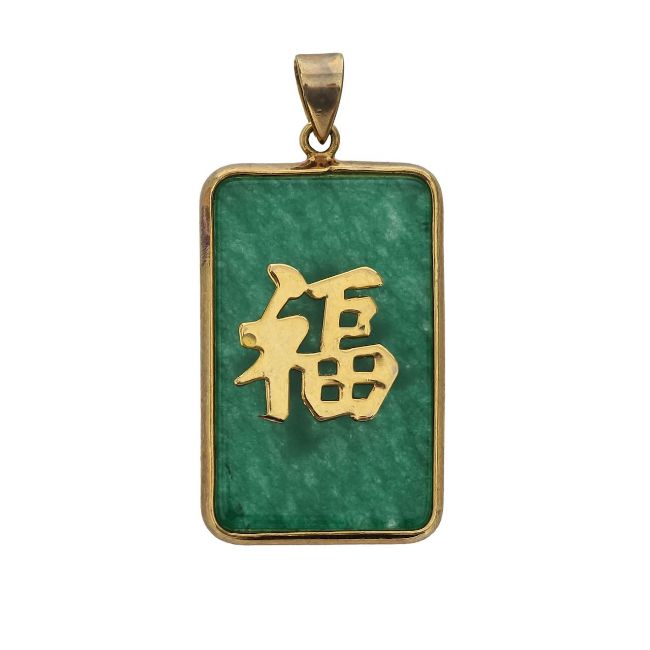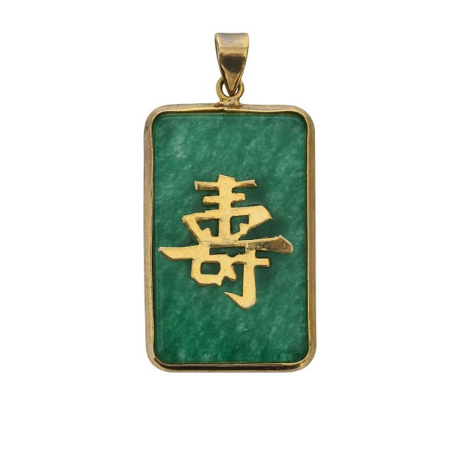 depiction the characters longevity and good fortune on each side mounted to a lucky green 'spectacle set' stone