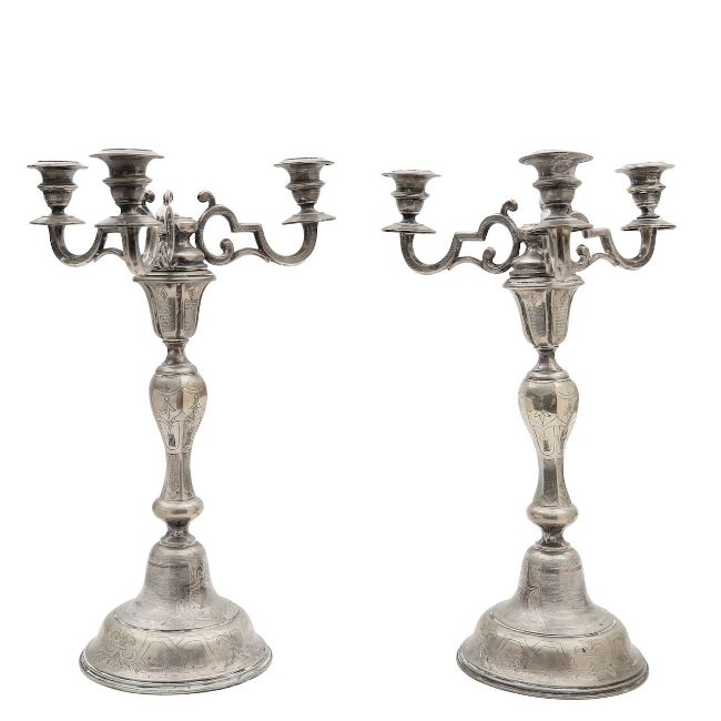 A pair of Austro-Hungarian silver Shabbat candlesticks,