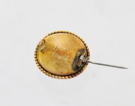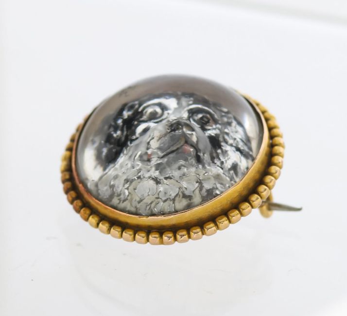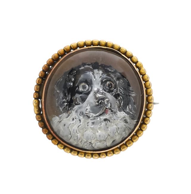 of circular form the portrait of a spaniel surrounded by a beaded border, the reverse engraved 'Nora'