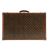 with hand-painted monogram canvas, lozine leather trim and rolled handle, brass hardware including corner bumps and triple buckle closure, with engraved signature lock plate.