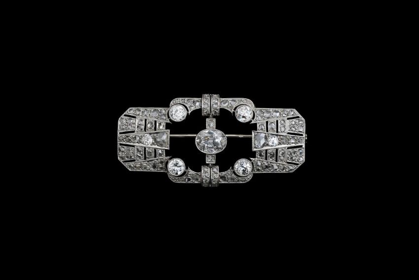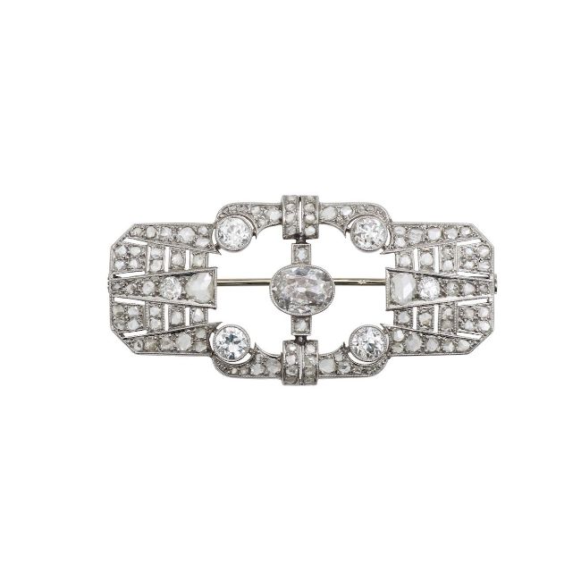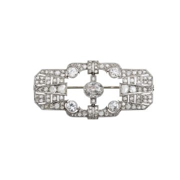 An attractive Continental Art Deco diamond set panel brooch