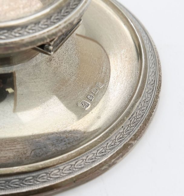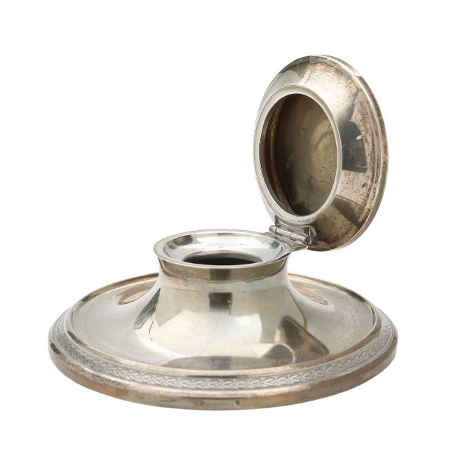 A silver capstan inkwell,