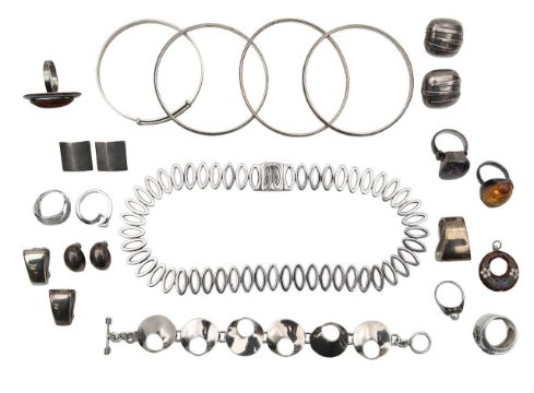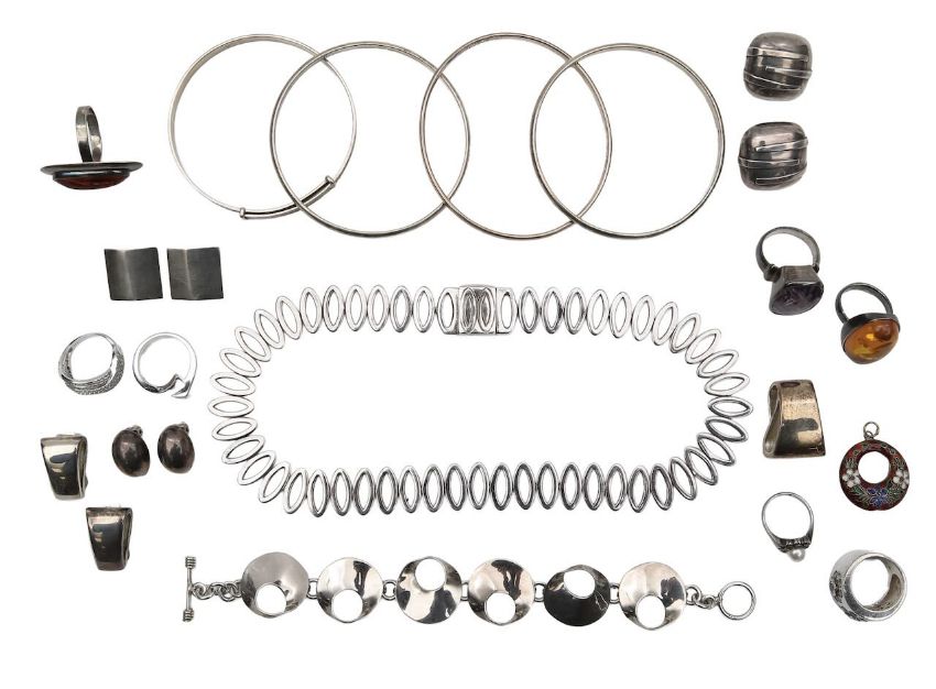 A collection of modern silver jewellery