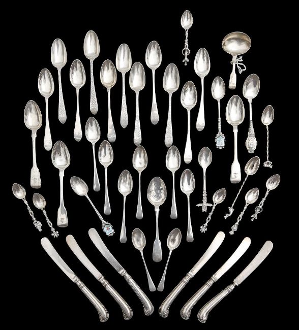 A collection of George III and later silver flatware
