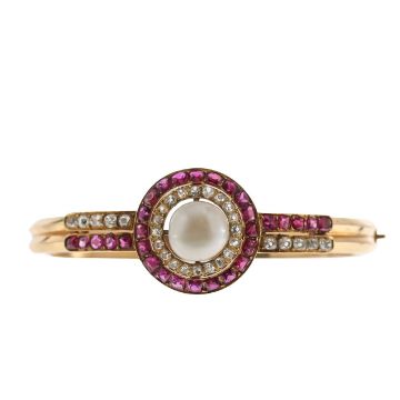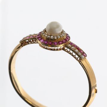 A French bangle set with ruby, diamond and pearl
