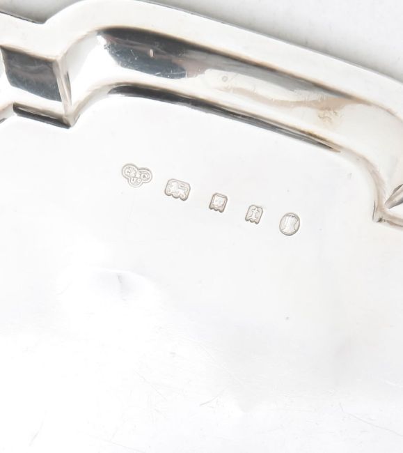 by Goldsmiths & Silversmiths, London 1934, of shaped form raised on four scrolled feet