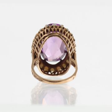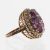 in rose metal with an oval mixed cut amethyst mounted in a coronet setting with a border of pearls (untested) high wire-work setting with indistinct makers mark