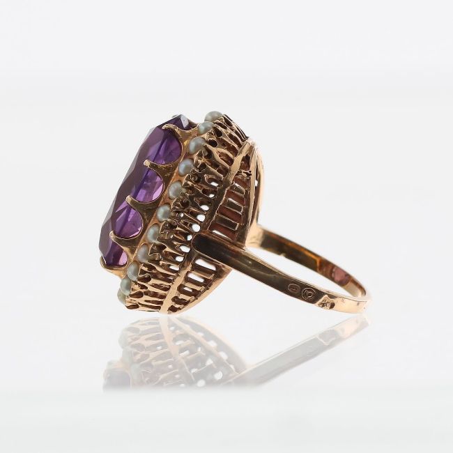 An amethyst and pearl dress ring