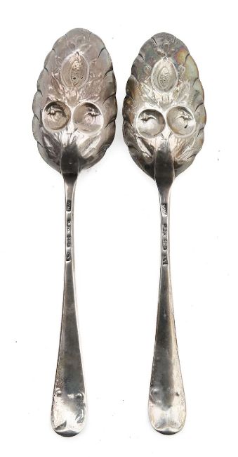 A pair of George III silver berry spoons,