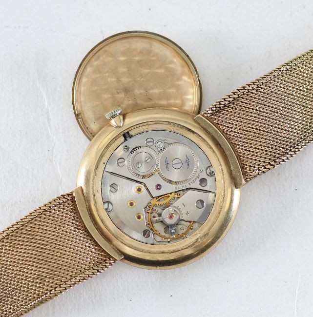 the dial with Roman numerals, with mesh bracelet stamped on the clasp 375, stamped on the case back 375