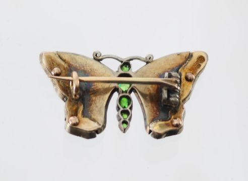 A Child and Child enamel and demantoid garnet butterfly brooch