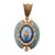 of oval domed form, the central oval turquoise enamel dome set with a coral and diamond-set motif above the white enamel and yellow gold rope twist and spherical border to the outer turquoise enamel frame with coral and diamond-set motif to the top and bottom, glazed compartment to the reverse, yellow gold suspensory loop with rope twist, coral and diamond-set decoration