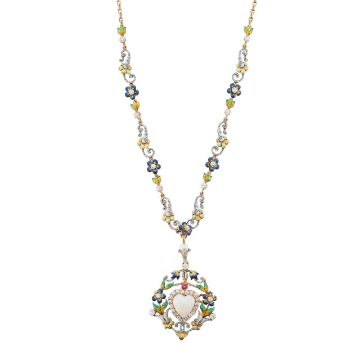 An opal, gem-set and enamelled pendant heart necklace,