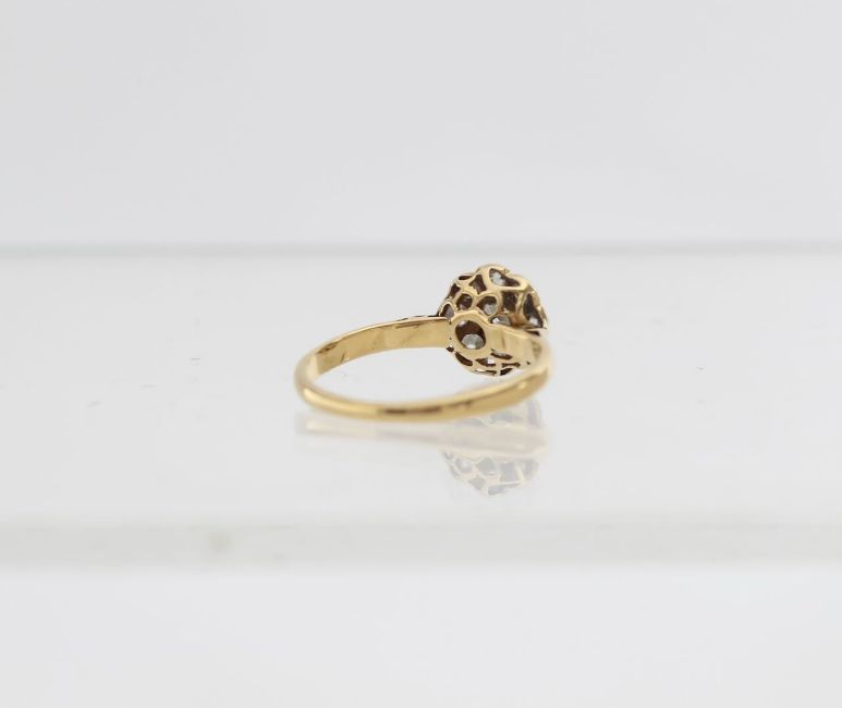 with nine old cut diamonds grain set cluster, wire-work collet and a tiffany style band, small finger size