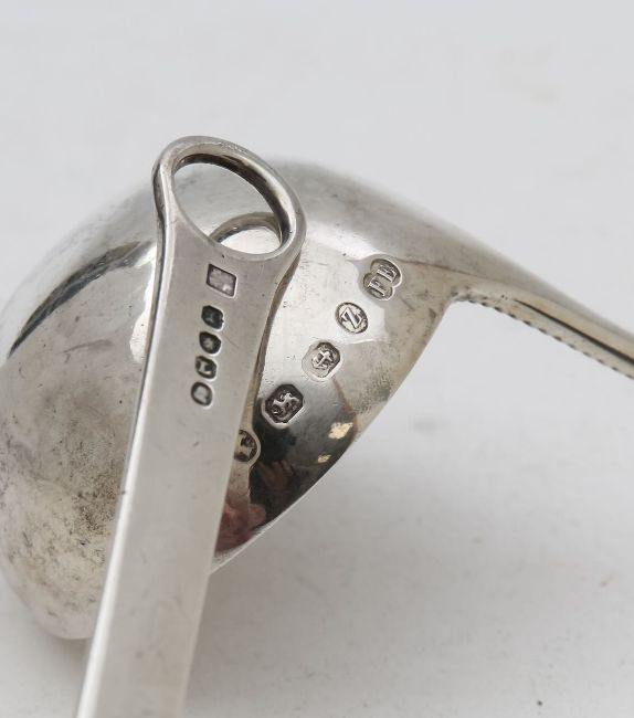 the meat skewer by Peter & William Bateman, London 1806, the ladle by Elkington & Co, Birmingham 1874 (2)