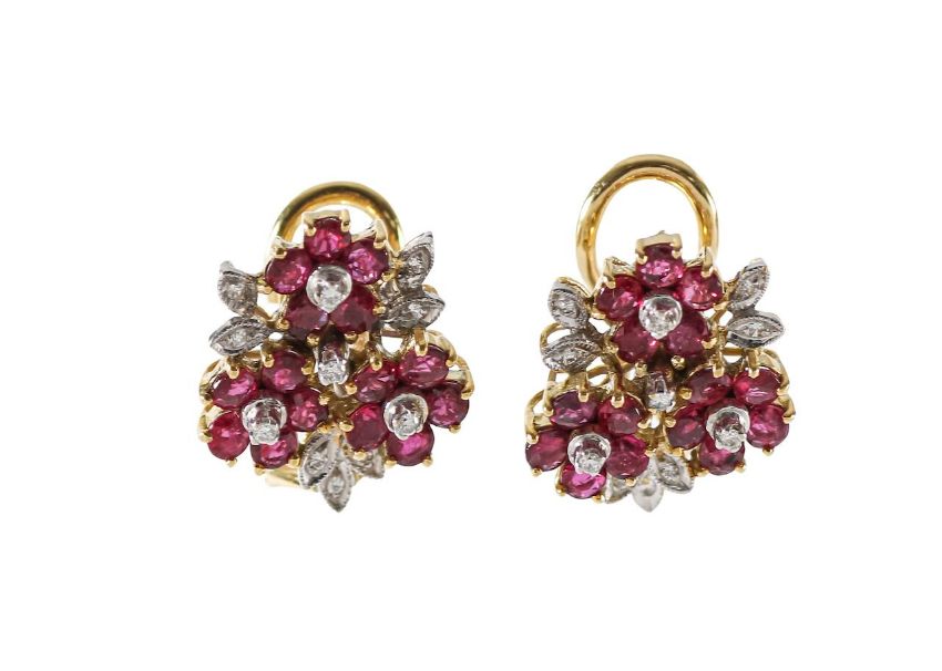 Condition: Good condition, the backs can convert from clips to studs, rubies are bright and matched and are untested