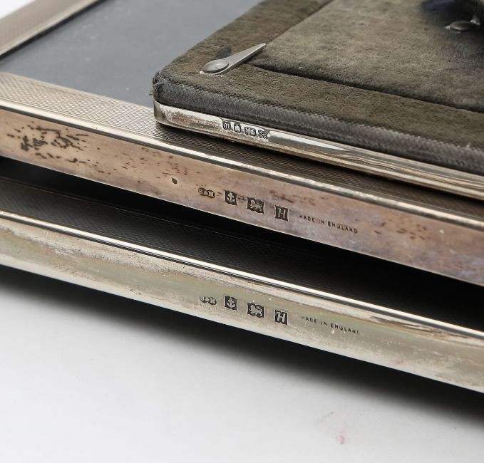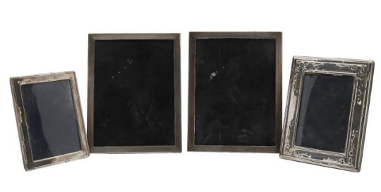 of rectangular form, comprising an engine-turned pair by Sanders & Mackenzie, Birmingham 1957, a smaller foliate embossed example by P J Panton, Birmingham 1986, and another by Kitney & Co., London 1996 (4)