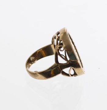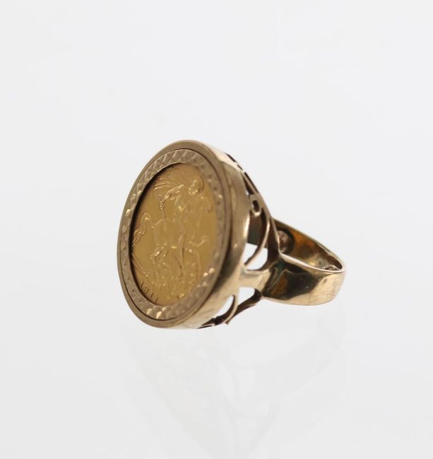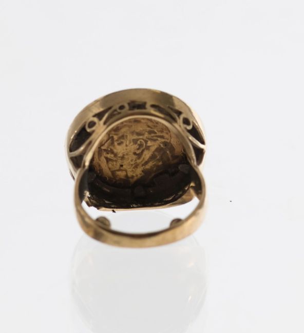 George V facing left with George and the Dragon to reverse, loose fitted in 9ct ring with pierced gallery