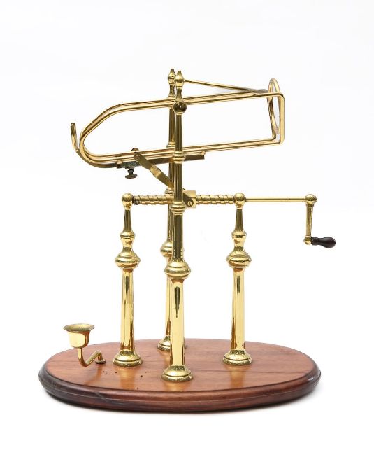 20th century, with a screw mechanism, and candleholder, raised on a wood plinth