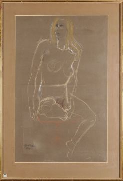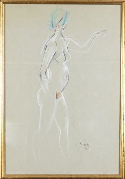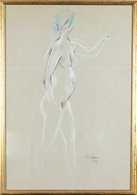 comprising 'Judith', signed, limited edition print 63/100, labelled verso, mounted, framed and glazed; together with 'girl with pink hair', signed and dated 1994, pencil, chalk and pastel, mounted, framed and glazed; with another similar (3)