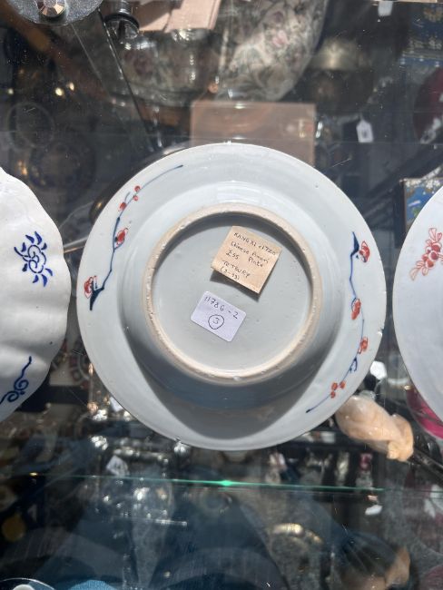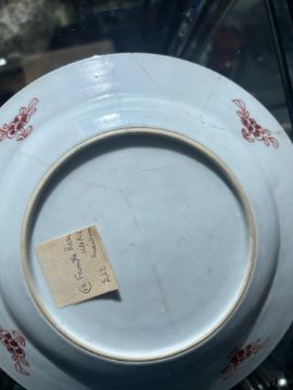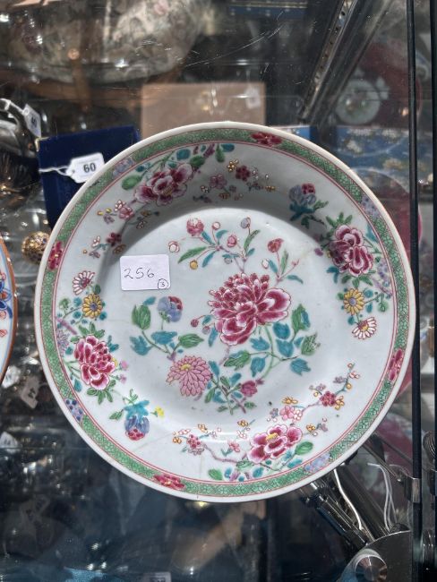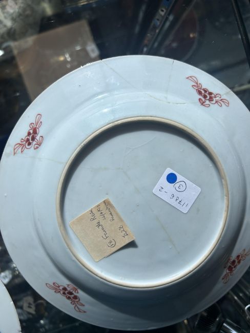 Condition: The famille rose with restored cracks. The Chinese Imari with rim chips.