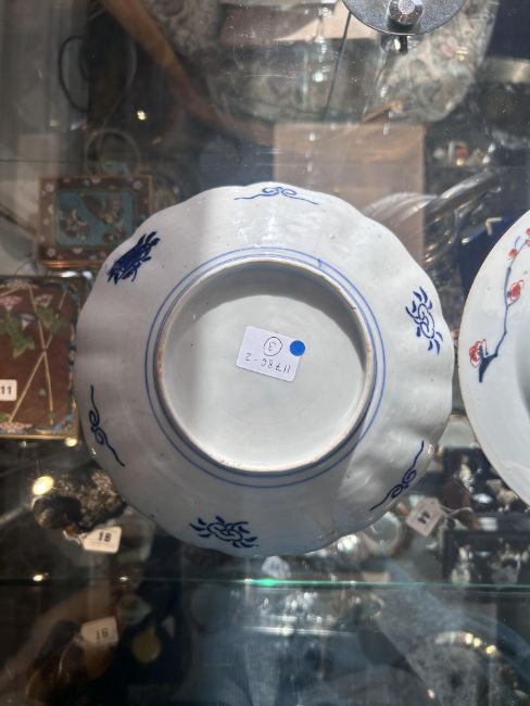 A Japanese and two Chinese porcelain dishes,