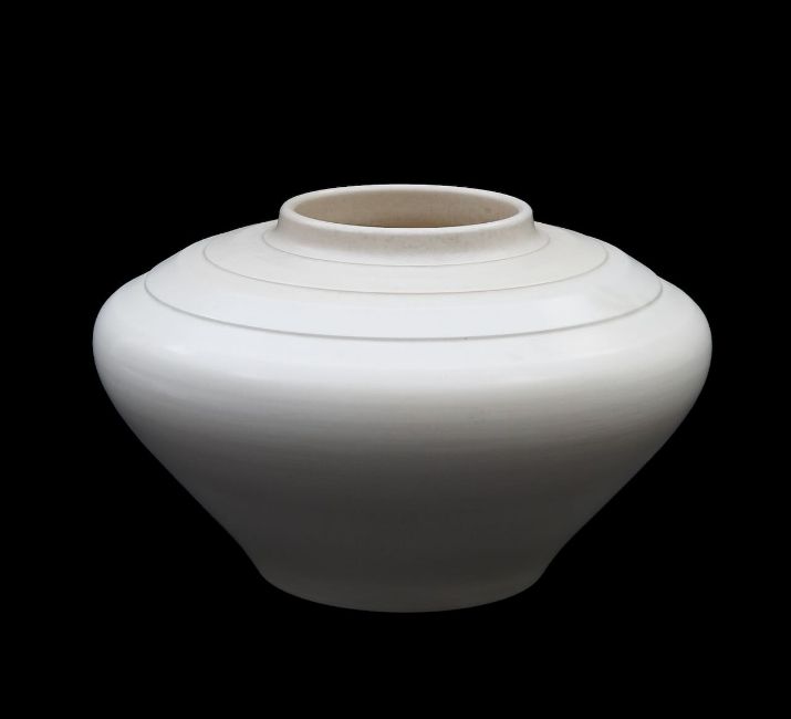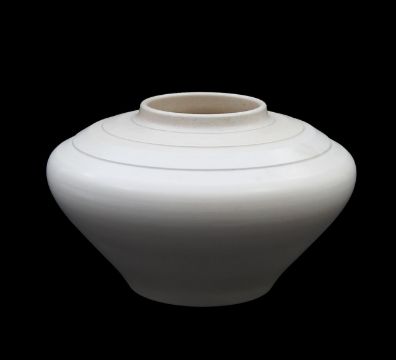 1930s, of squat form, in a cream moonstone glaze, printed signature and mark