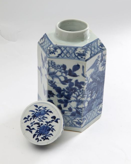 19th century, of hexagonal form, decorated with a Phoenix among flowers, with a four-character Kangxi type mark to the base