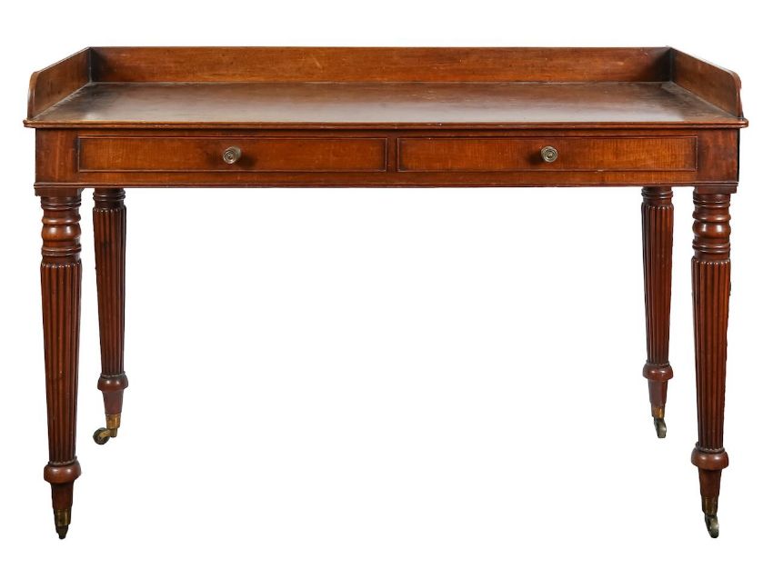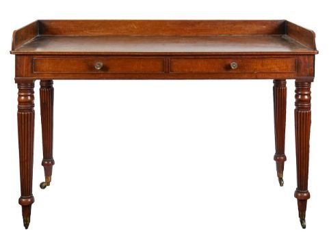 early 19th century, in the manner of Gillows, with two frieze drawers, above reeded supports, raised on brass castors