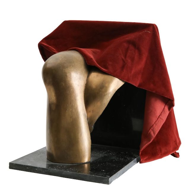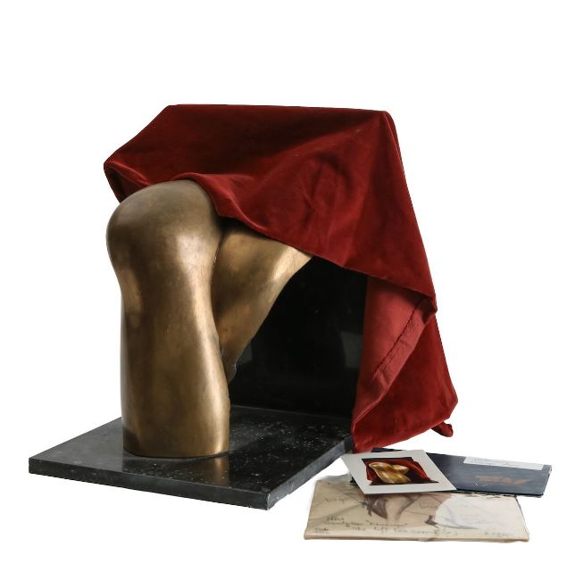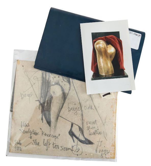 'Knee Caps', bronze on granite base, unsigned, together with original drawing (2)