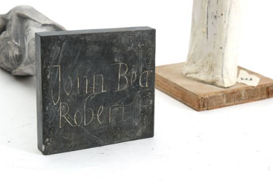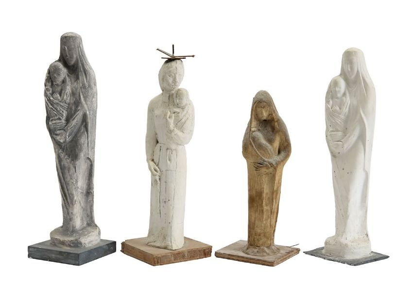 four figurative plaster, clay and wood maquettes, modelled as a Madonna and child, wearing draped veils, including a preliminary design for a weather vane, with pencil annotations (4) All are maquettes for full sized works in British cathedrals and churches.