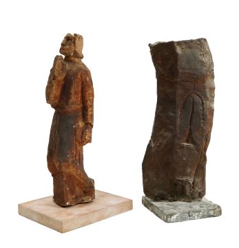 Two maquettes: 'St. John the Evangelist', clay, on loose wooden plinth, unsigned; 'Torse Rambert', clay, on square stone base, unsigned (2)
