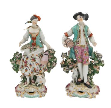 late 18th century, of a young man, holding a barrel, with a dog at his feet, and shepherdess, holding a flask, with a lamb at her feet (2)