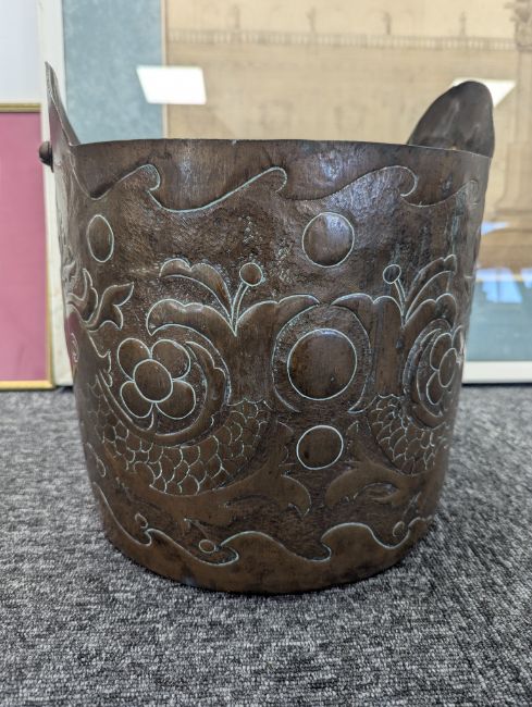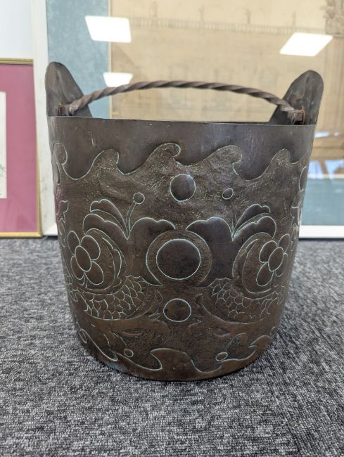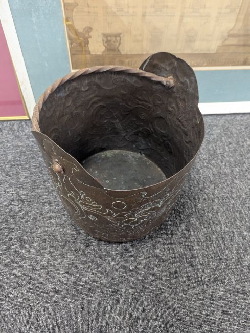 An Arts & Crafts copper log bin,