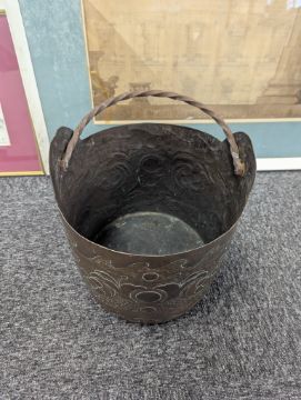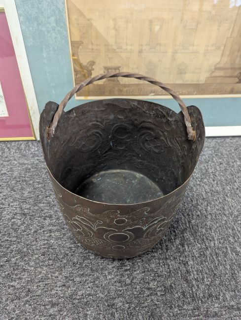 20th century, with incised foliate decoration, and a heavy rope twist handle
