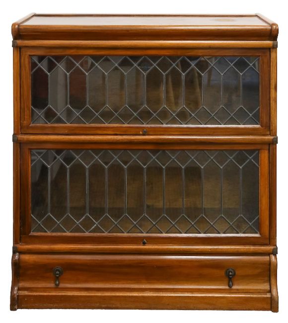 early 20th century, the two sections with astragal glazed doors, above a frieze drawer