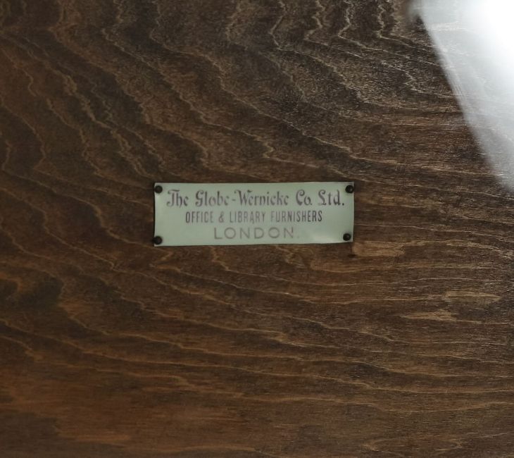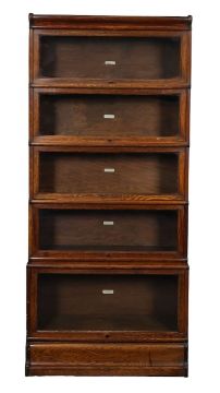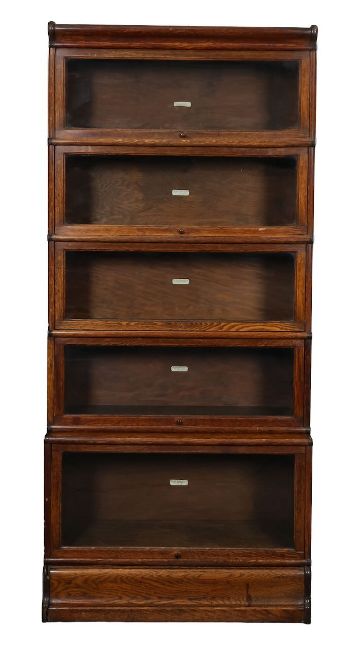 early 20th century, the five sections with brass mounts and glazed sliding doors, labelled 'The Globe Wenicke Co. Ltd., Office and Library Furnishers, London'