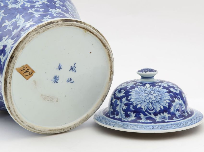 19th century, decorated with flowers amongst foliage, with a Meander border, four character Chenghua mark to the base