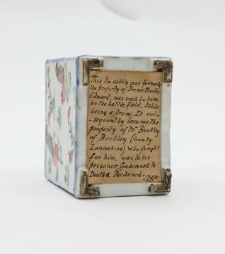 There are other supposed instances of Bonnie Prince Charlie using contemporary Chinese porcelain. The Stirling Smith Collection, Scotland, contains a punch bowl from which Bonnie Prince Charlie purportedly drank from at Bannockburn House in 1746.