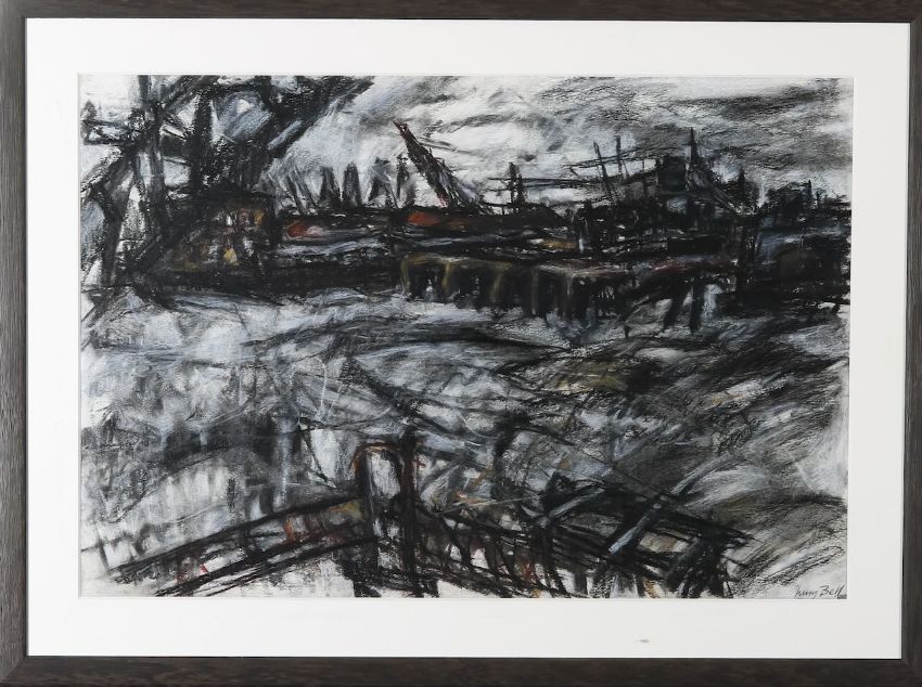 signed and dated '88 (lower-right) charcoal on paper, mounted, framed and glazed
