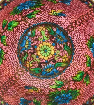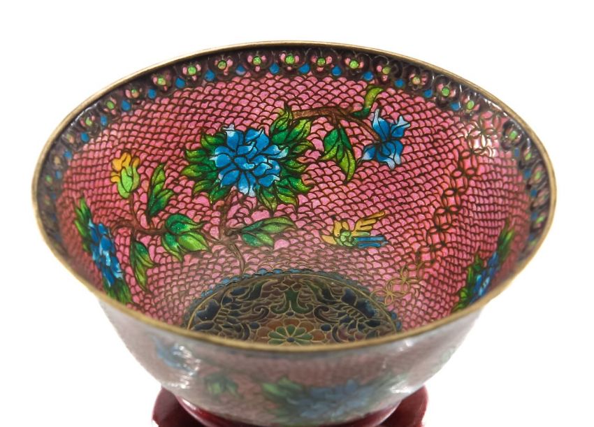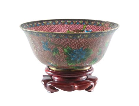 A Japanese plique à jour cloisonné bowl and stand,