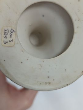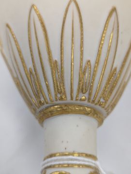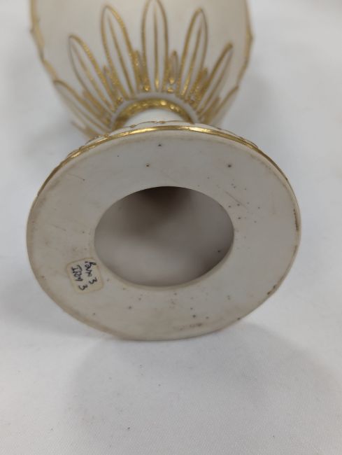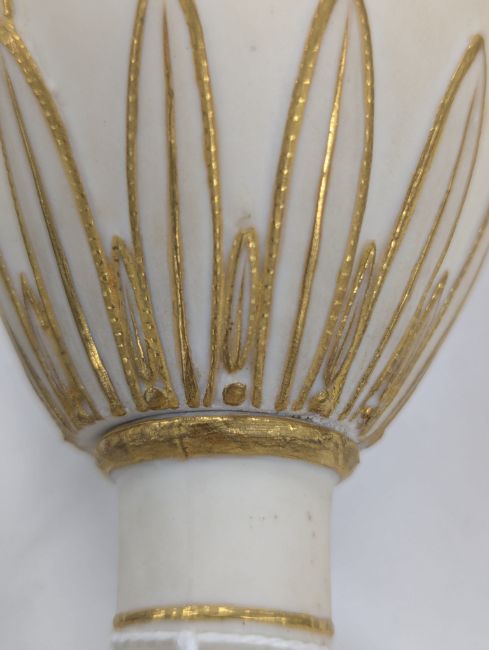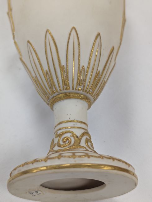 Condition: No chips. Some light marks. Faint hairline cracks and evidence of restoration around the vase and socle.