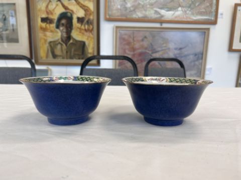 Condition: One bowl with a chip to the rim, and restoration. The other with visible restoration to the rim.